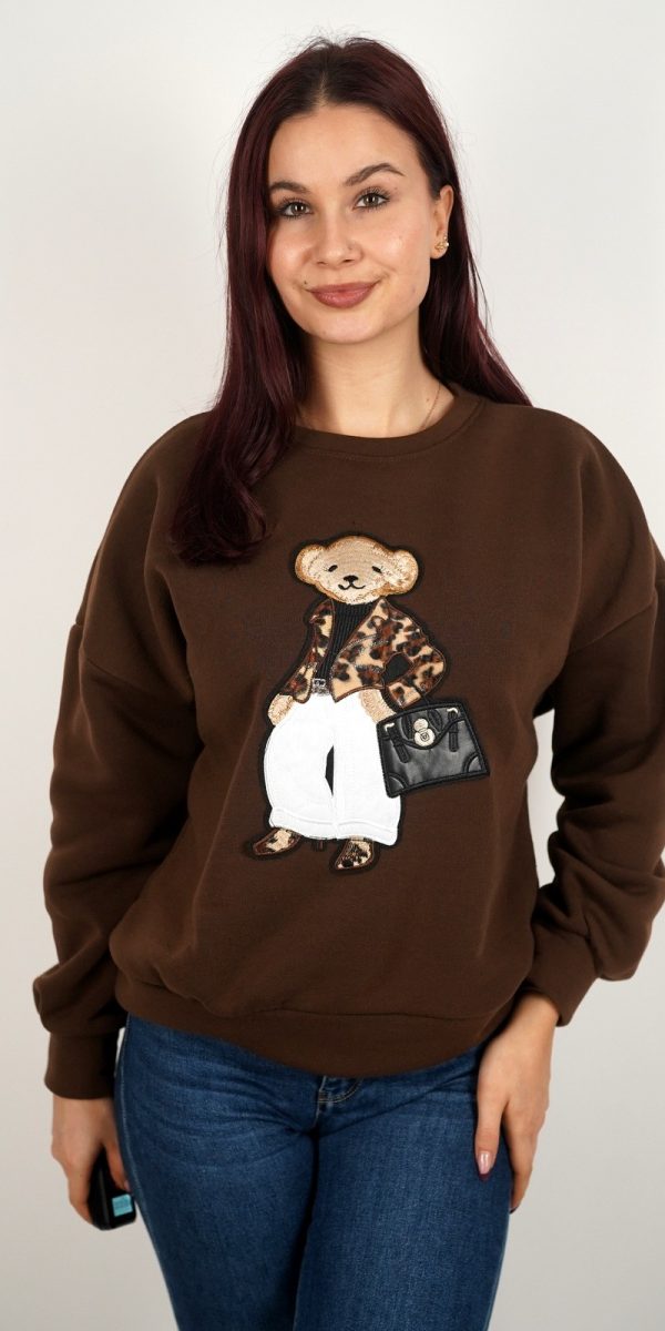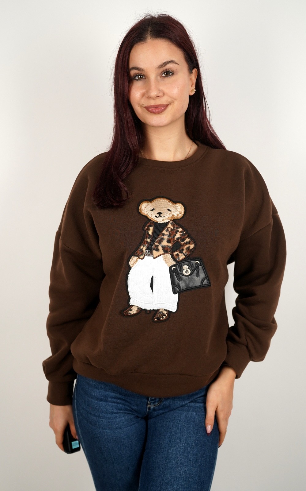 kolekcijaŽenska pamučna sweatshirt s 3D medvjedić aplikacijom – 10774