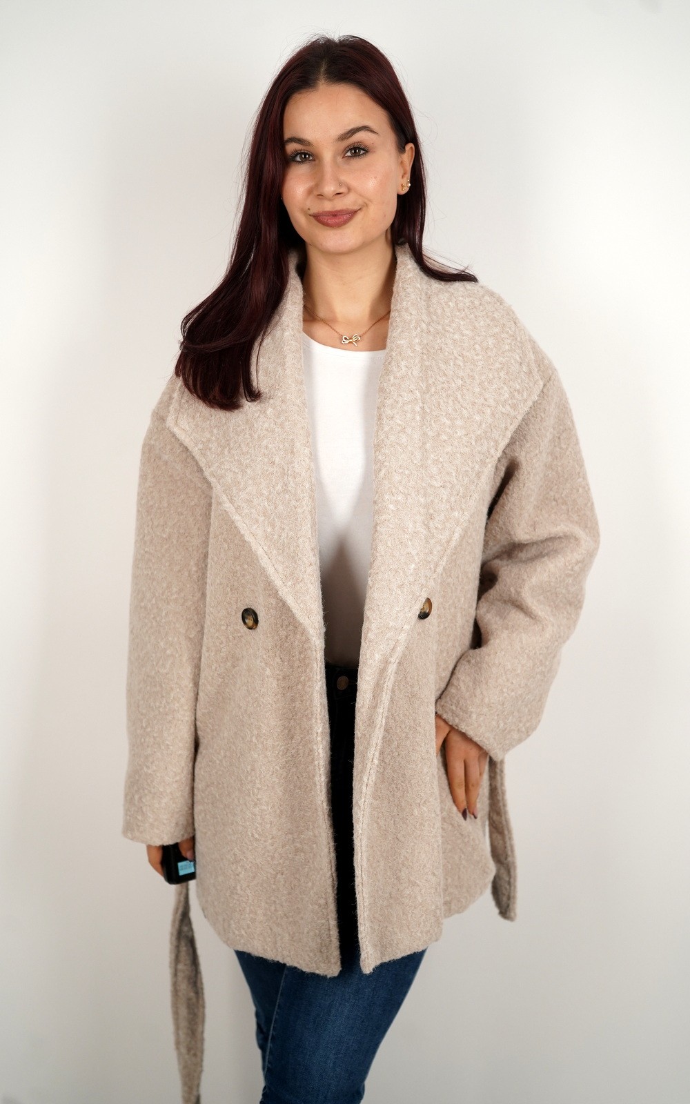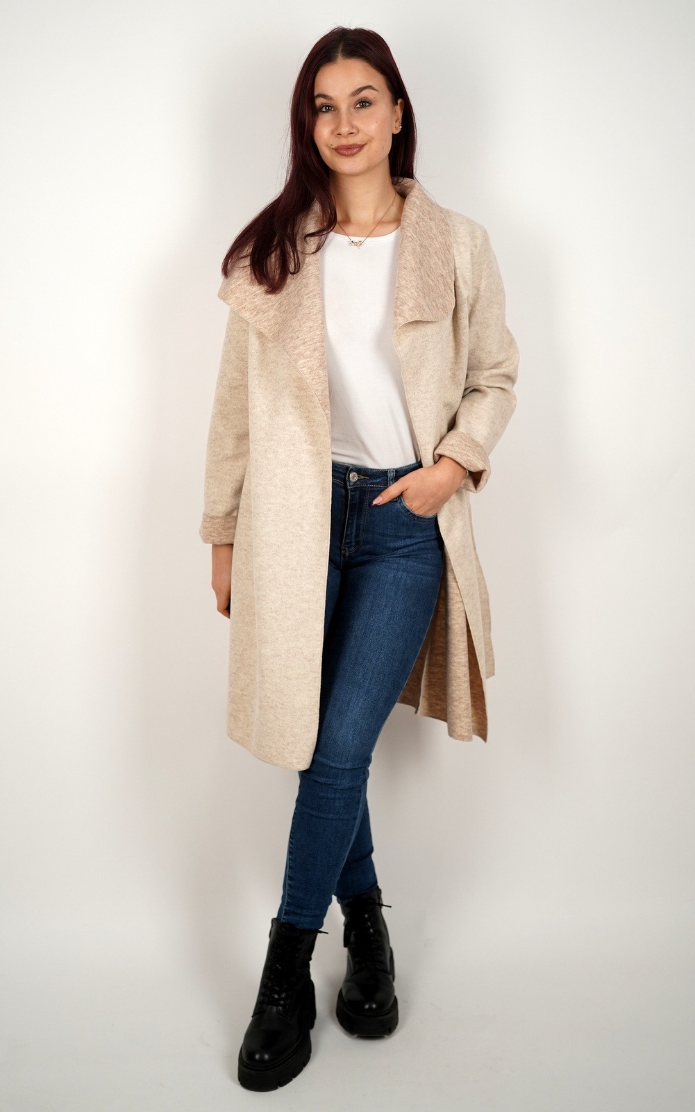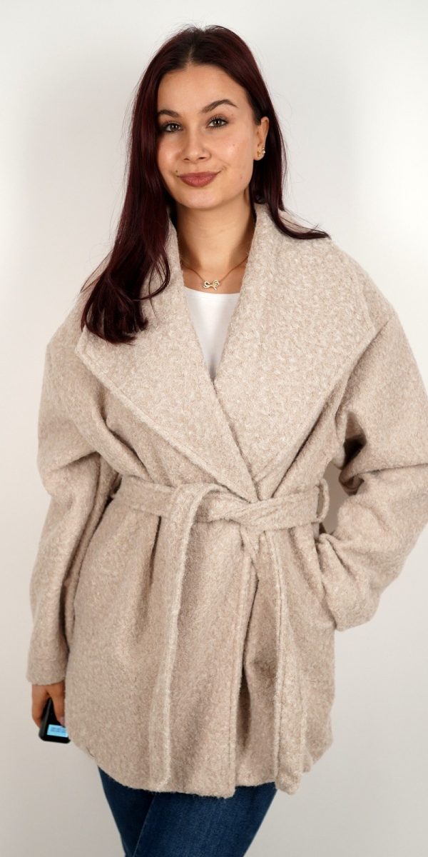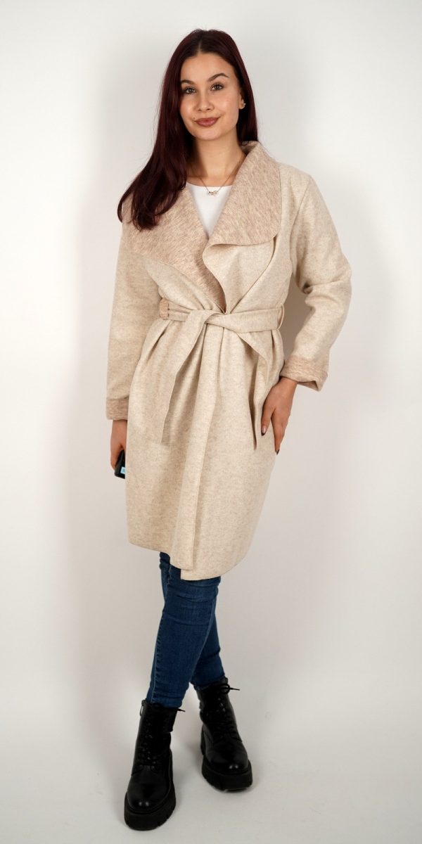 Moderan ženski kaput s elegantnim širokim reverom i praktičnim pojasom za isticanje struka. Udoban, mekan…