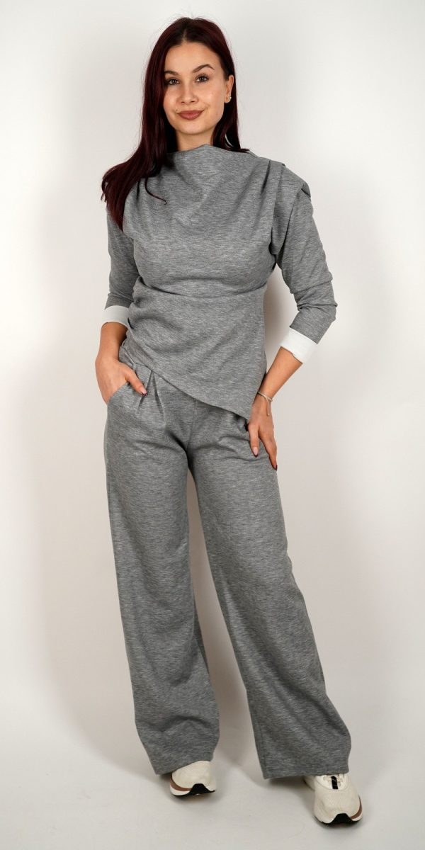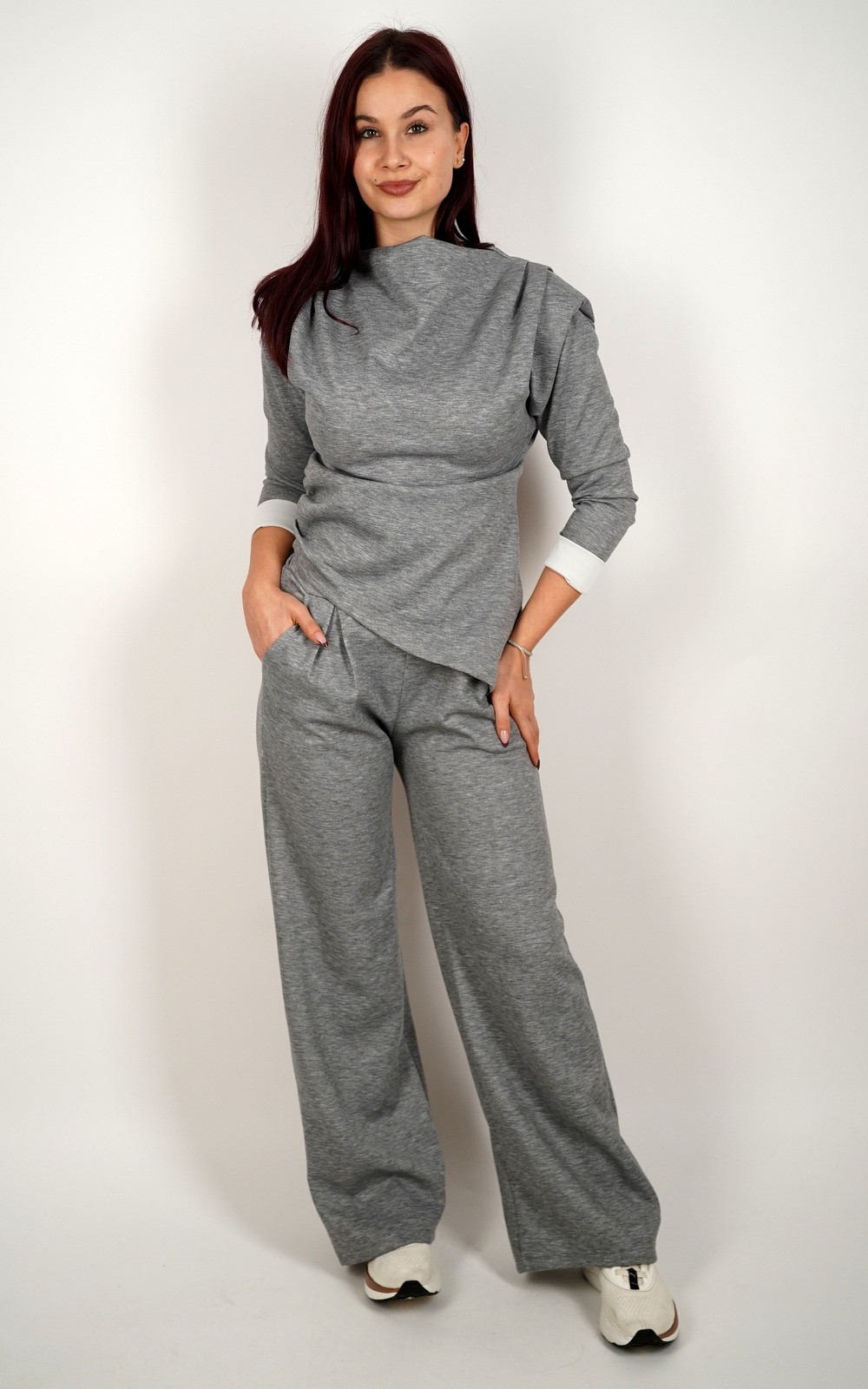 Ženski komplet s asimetričnim gornjim dijelom i širokim hlačama – 30095