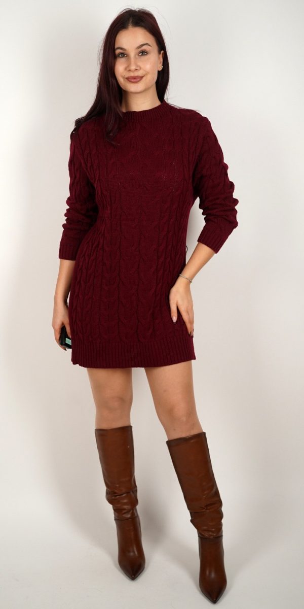 kolekcija10% POPUSTA, BOŽIĆNI POPUSTI, Haljine, Izdvojeno, Nova kolekcija, Pletene haljine, Pletivo, Plus Size, ŽeneŽenska pletena haljina s reljefnim pletenicama – 3082