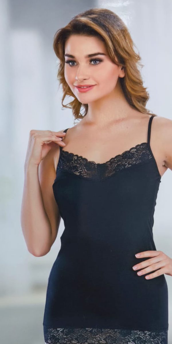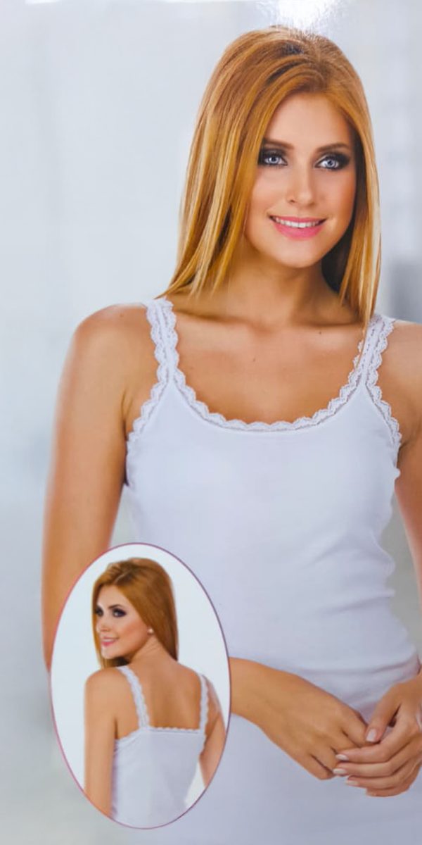 kolekcijaŽenska pamučna potkošulja s tankim naramenicama i čipkastim detaljima – 0012