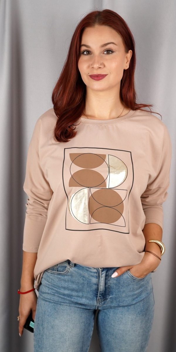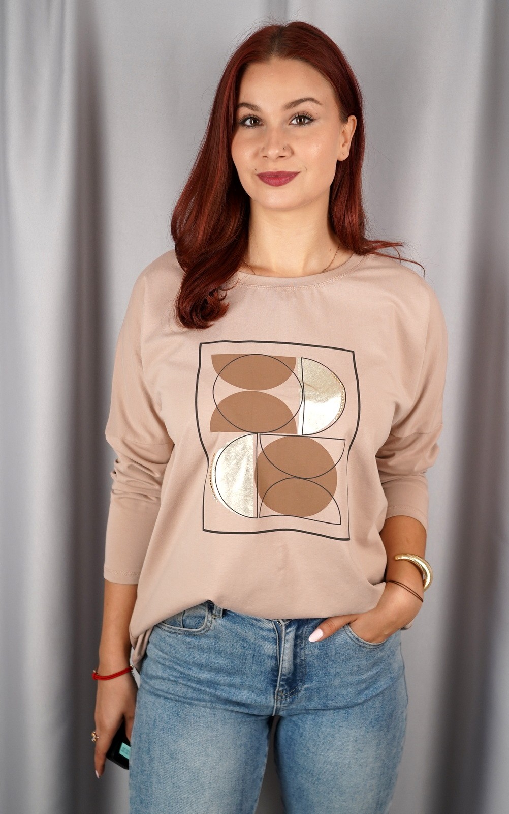 kolekcijaŽenska pamučna majica dugih rukava s geometrijskim zlatnim printom – V9146
