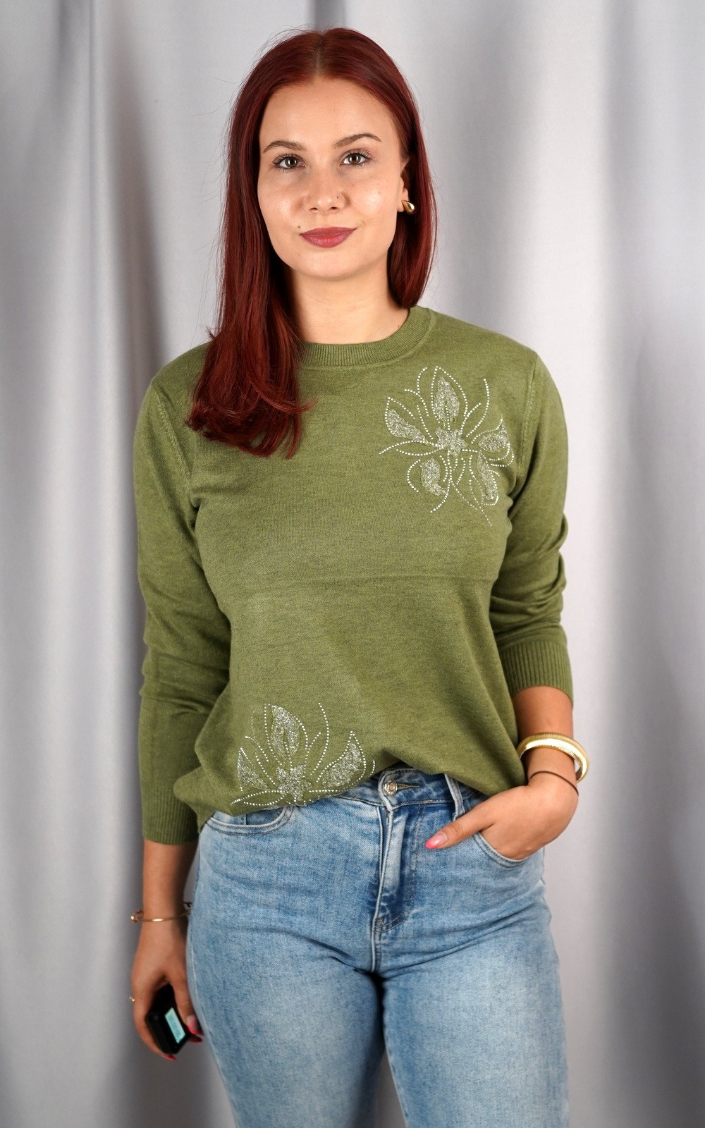 kolekcija20% POPUSTA, BOŽIĆNI POPUSTI, Izdvojeno, Majice, Majice fino meko pletivo, Nova kolekcija, Pletene majice, Pletivo, Plus Size, ŽeneŽenska majica fino meko pletivo sa cirkon cvjetićima – 9570