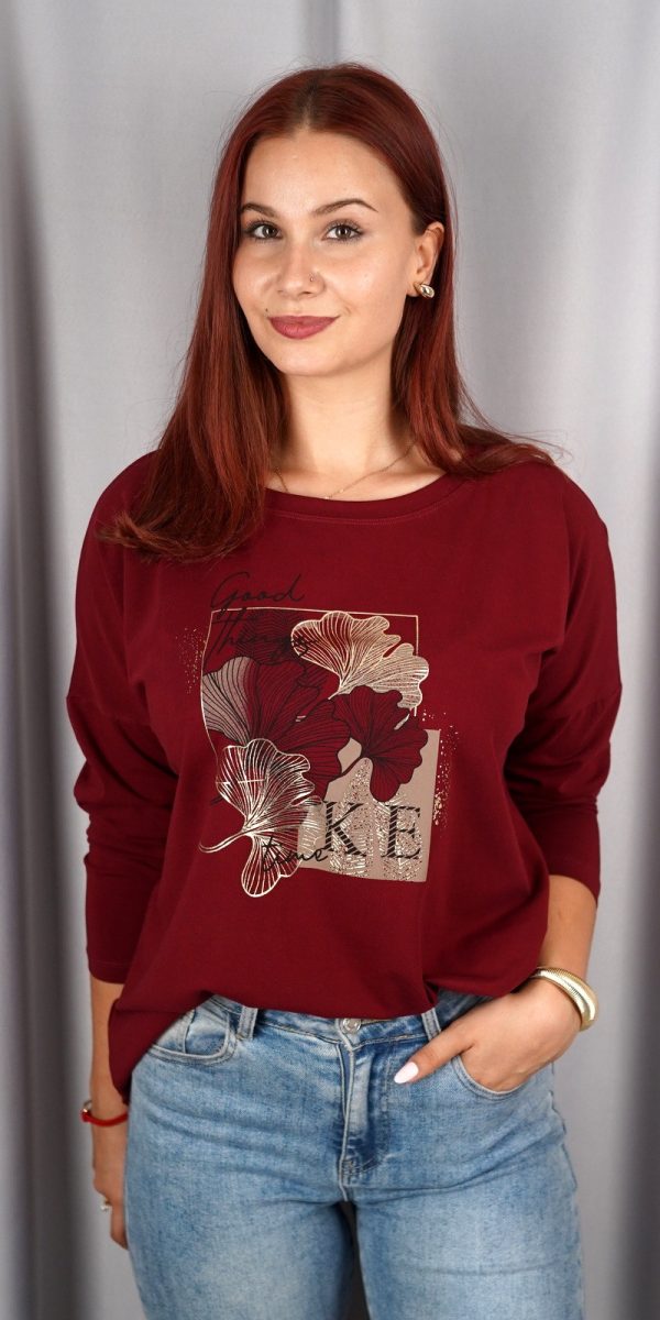 kolekcijaŽenska pamučna majica dugih rukava s printom cvjetnog motiva i natpisom – V9194