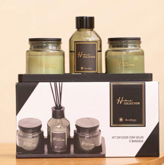 Mirisni set Home Collection – Osmantus & Green Tea (difuzor i svijeće s poslužavnikom)