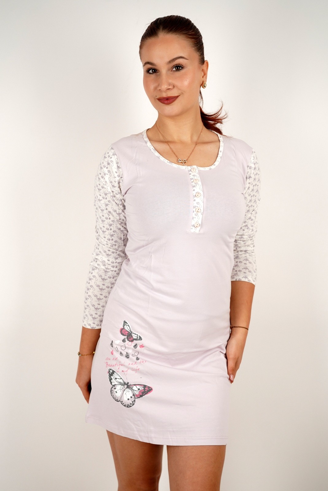 Ženska spavaćica s motivom leptira i uzorkom na rukavima – u veličinama – 14706