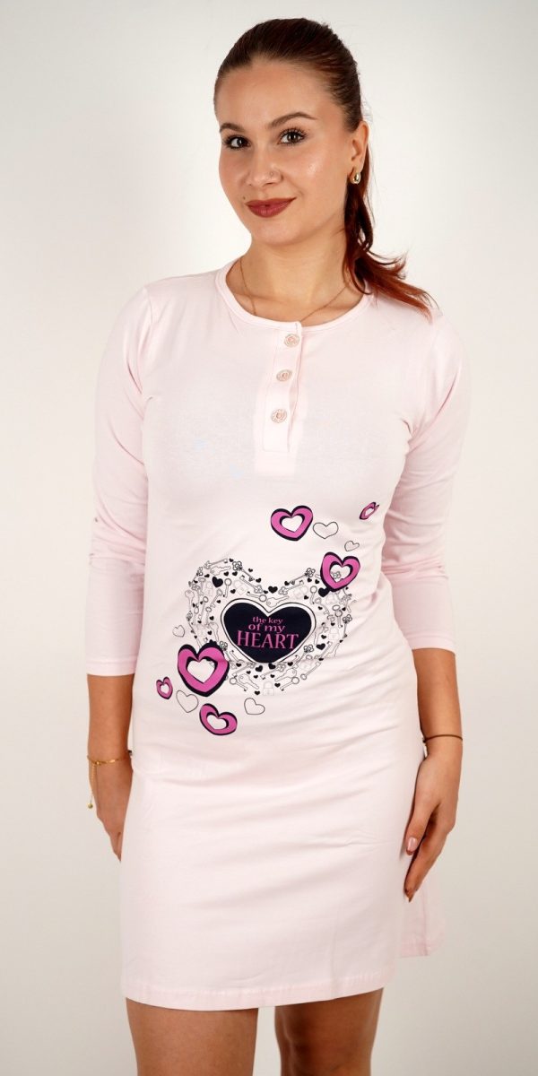 Ženska spavaćica s motivom srca i natpisom The Key of My Heart – u veličinama – 7138