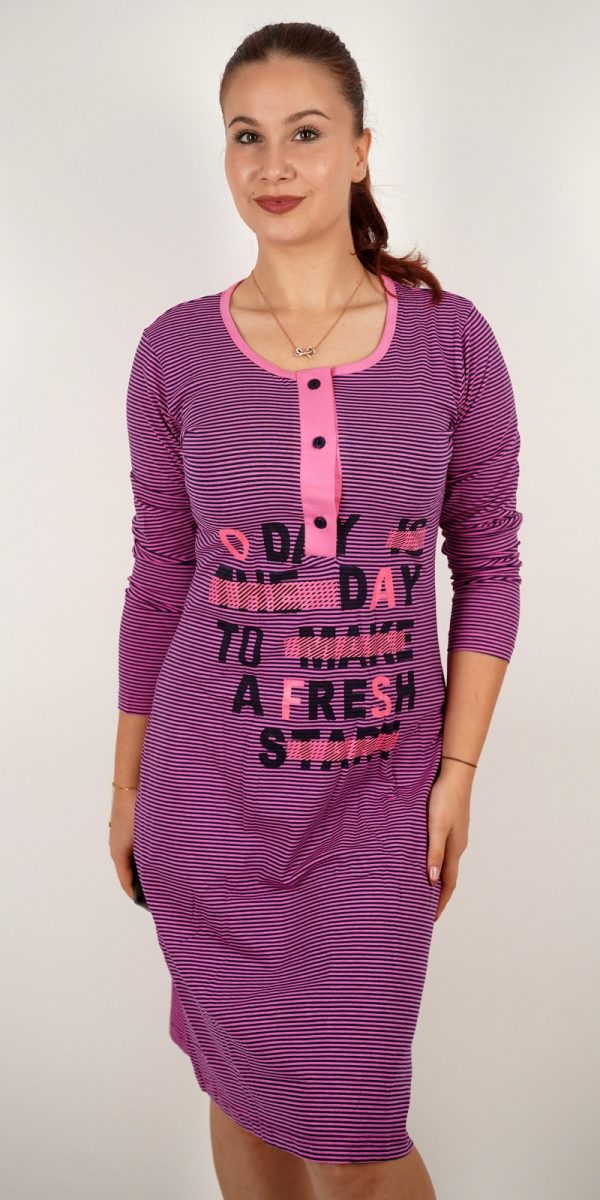 Ženska spavaćica na pruge s natpisom Fresh Start – u veličinama – 3453