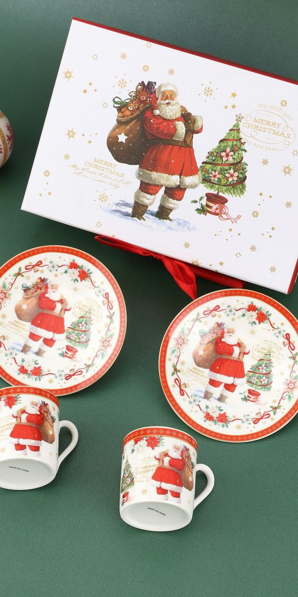 Porculanski set od 2 šalice i 2 tanjurića u blagdanskom dizajnu. Dolazi u ukrasnoj poklon…