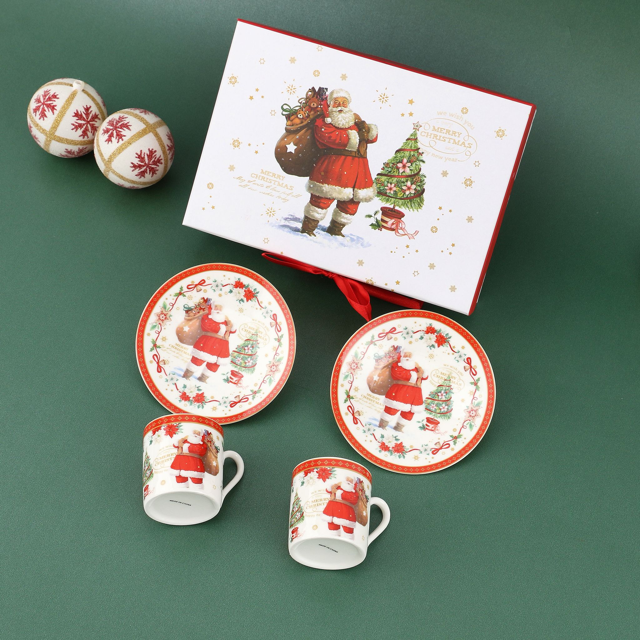 Blagdanski set šalica i tanjurića – 2 šalice + 2 tanjurića – “SANTA”
