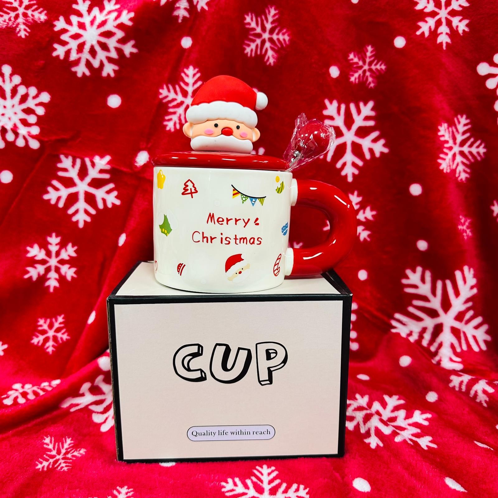 Keramička božićna šalica s poklopcem i žlicom – GIFT CUP