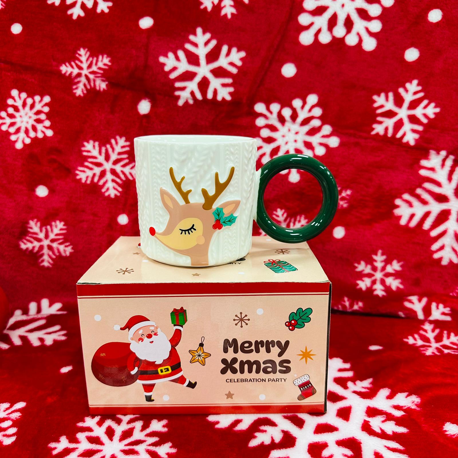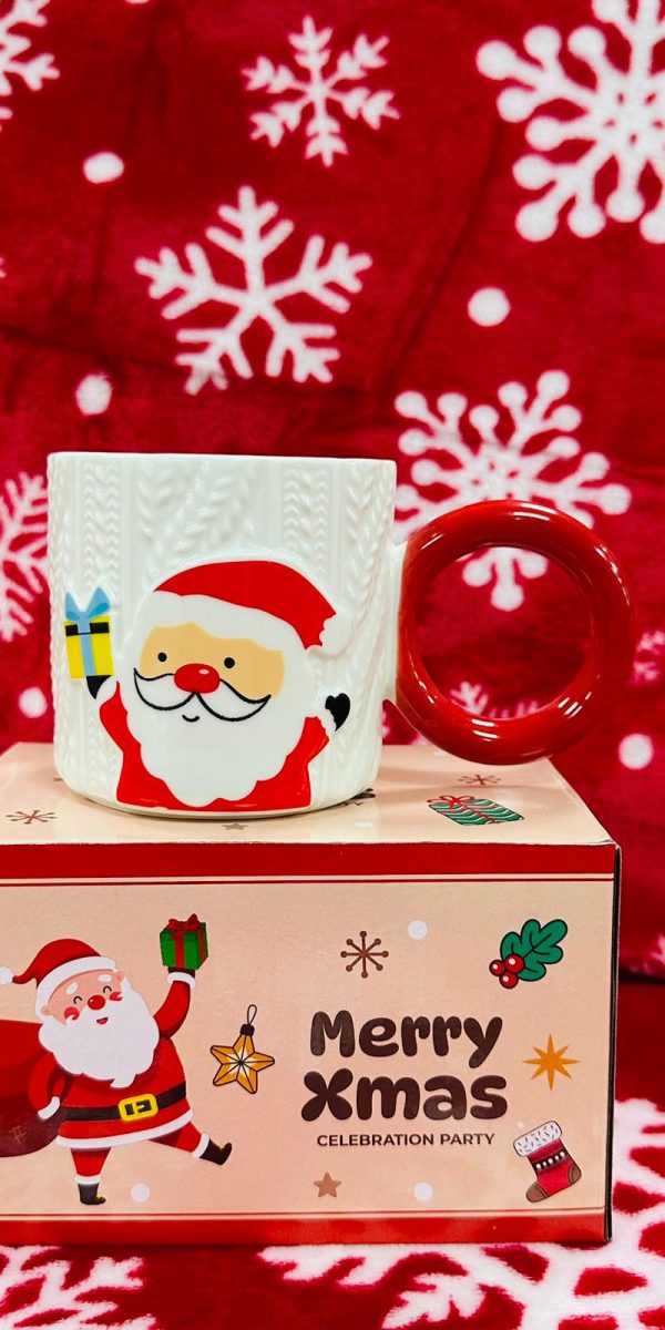 Keramička božićna šalica s 3D reljefnim motivom i okruglom ručkom