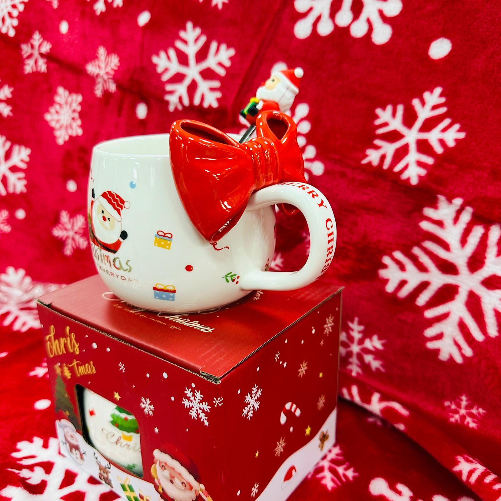 Keramička božićna šalica s 3D mašnom i ukrasnom žličicom, idealna za blagdanske napitke. Dolazi u…