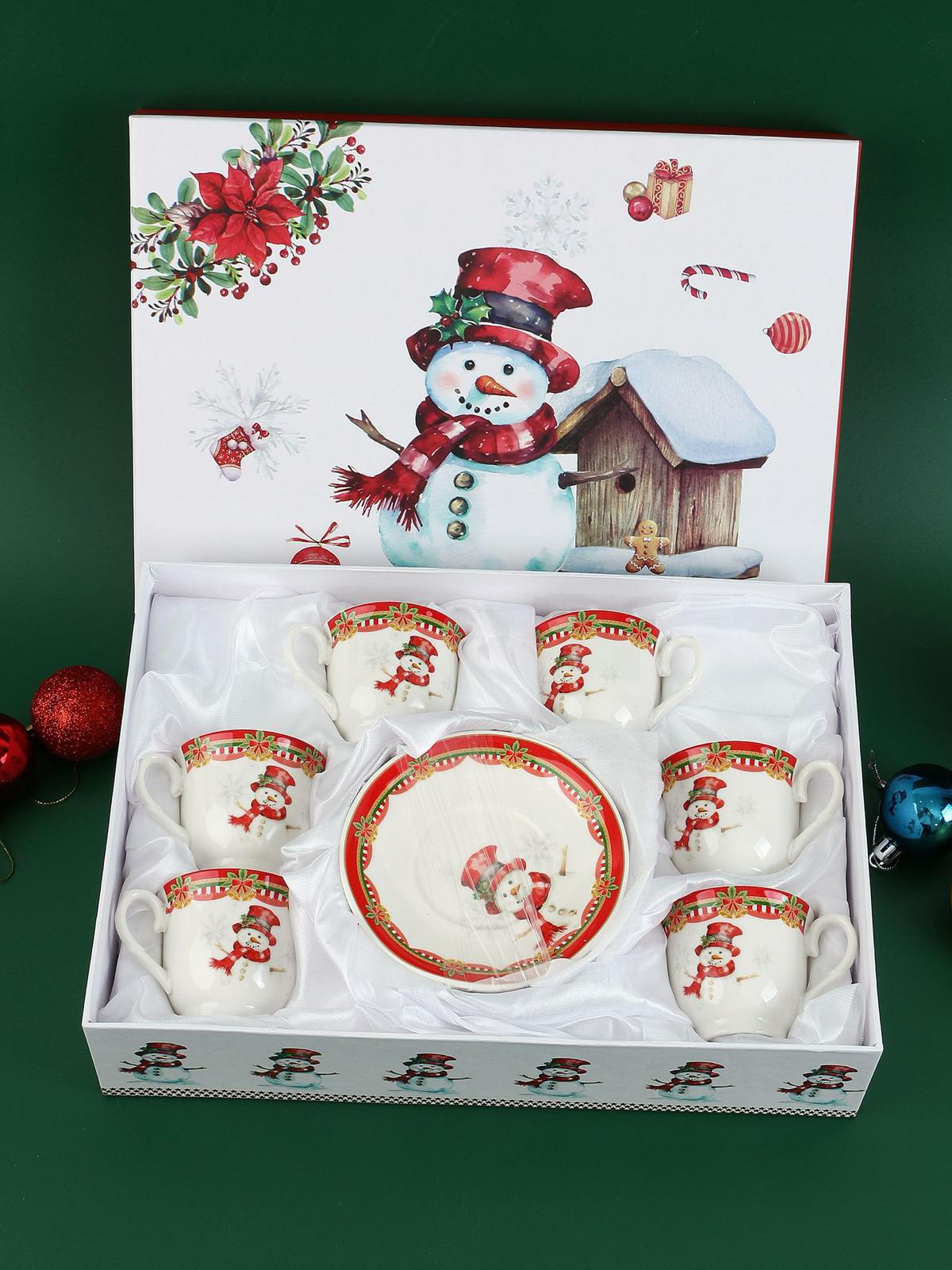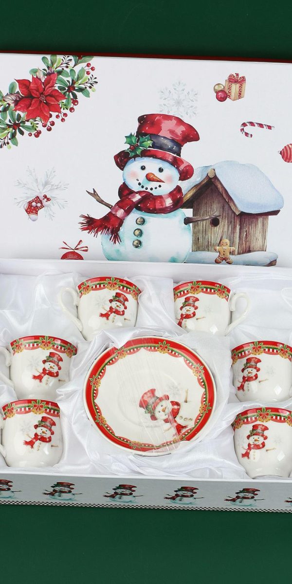 Blagdanski set šalica i tanjurića – 6 šalica (100ml) + 6 tanjurića – “Snowman”