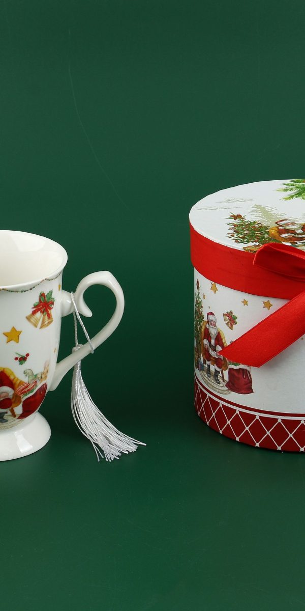 Keramička božićna šalica s motivom božićnog bora u poklon kutiji – savršen poklon za blagdane!…