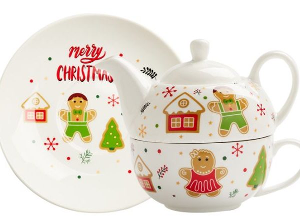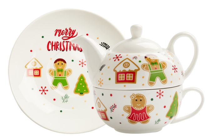 Blagdanski set za čaj – čajnik + šalica + tanjurić – GINGERBREAD