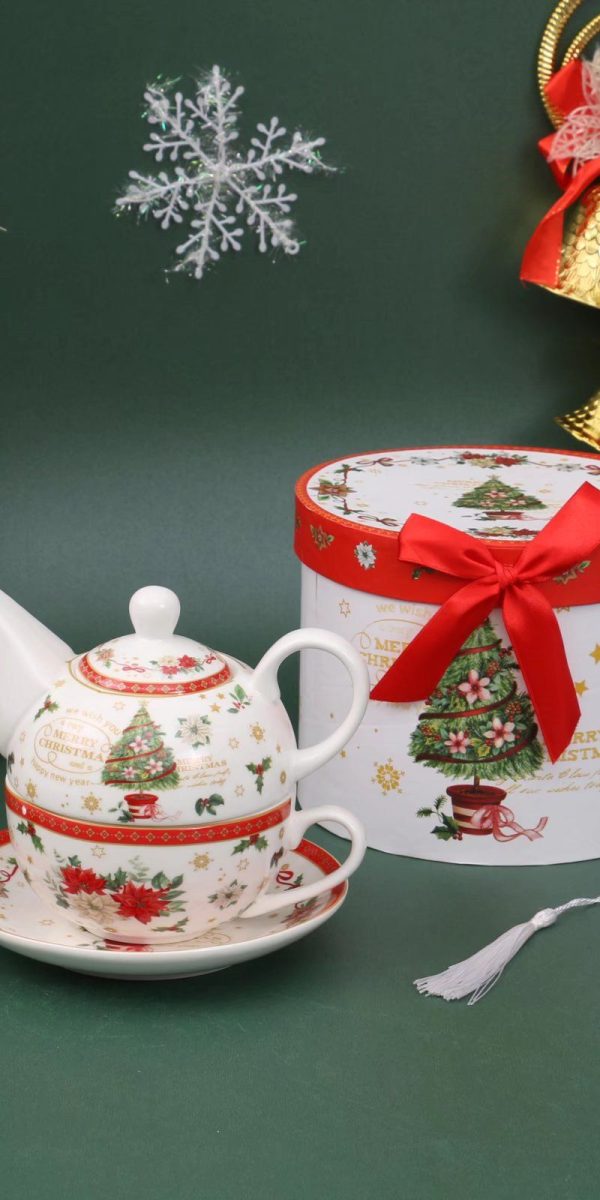 Blagdanski set za čaj – čajnik + šalica + tanjurić – CHRISTMAS TREE