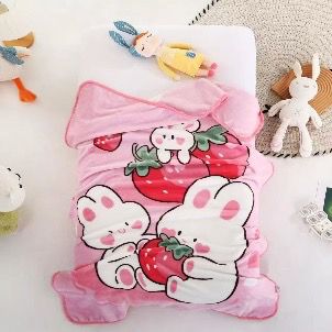 Topla meka dječja dekica s printom – 100×140 – zeko s jagodama