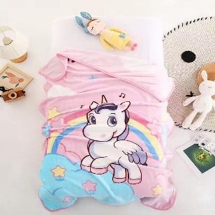 Topla meka dječja dekica s printom – 100×140 – jednorog i duga