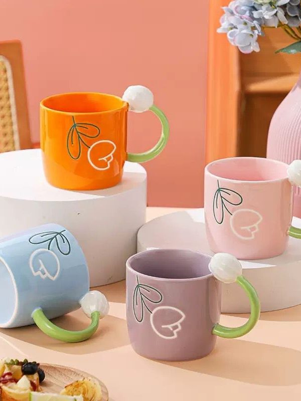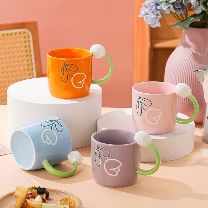 Keramička šalica s cvjetnim uzorkom i dekorativnom ručkom