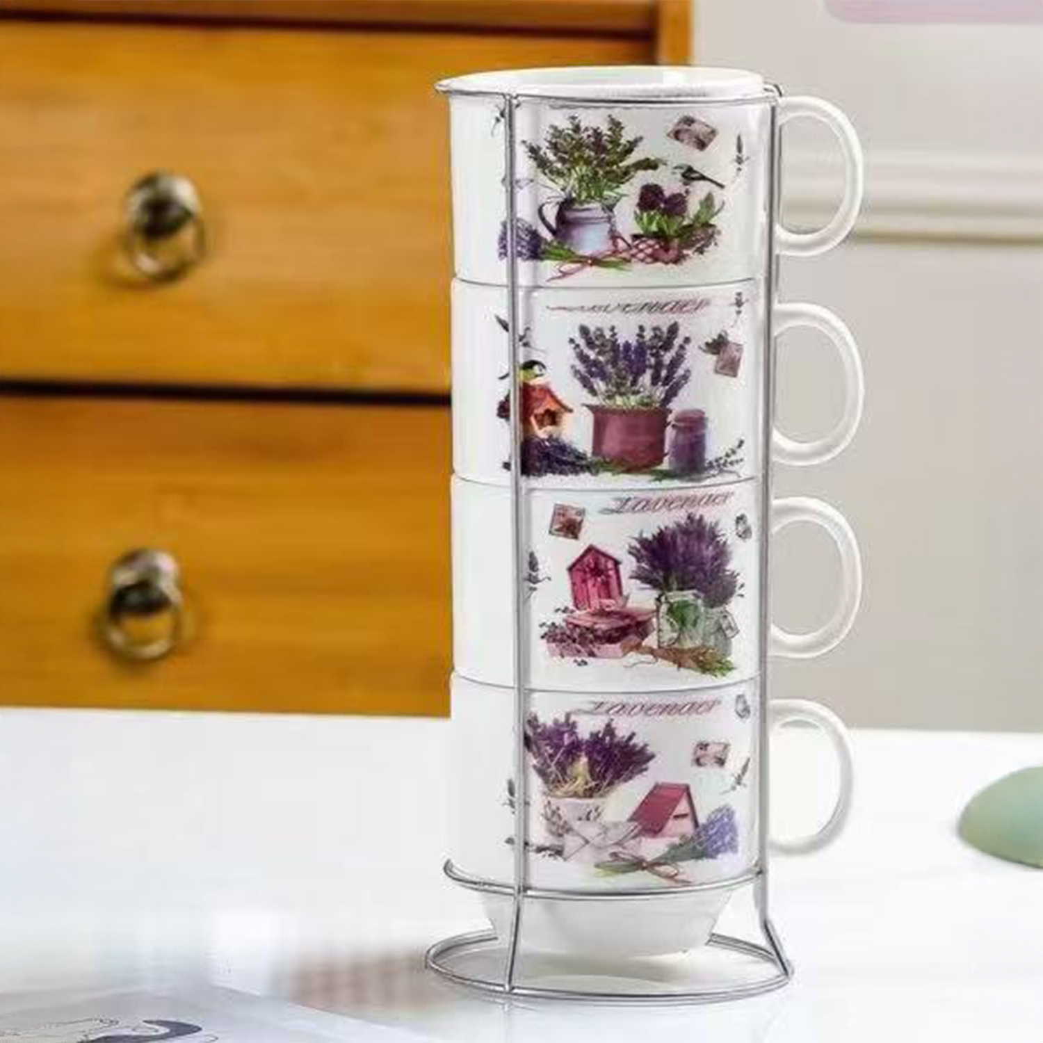 Šalice 100ml- set 4 komada + stalak – LAVANDA – SS-XB401