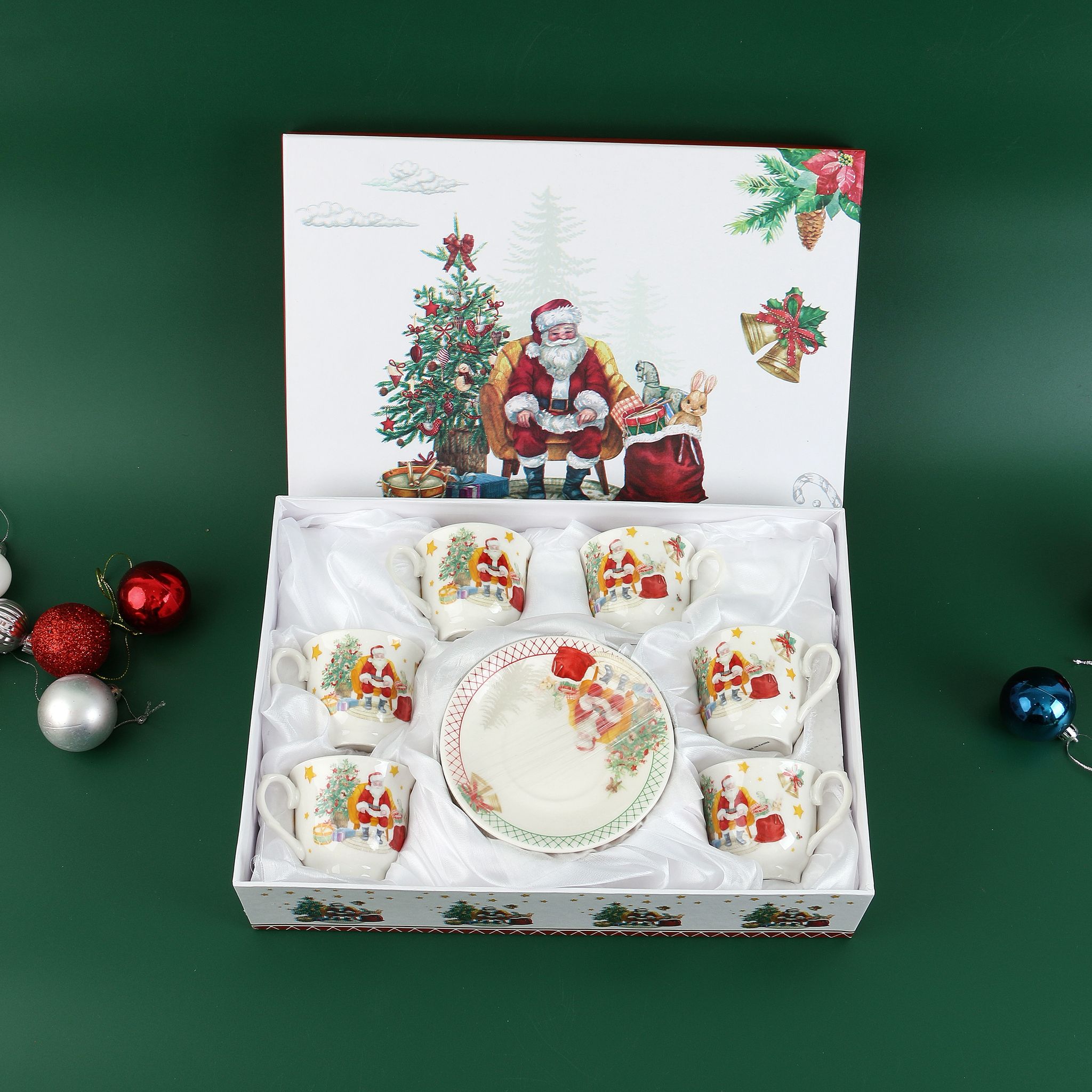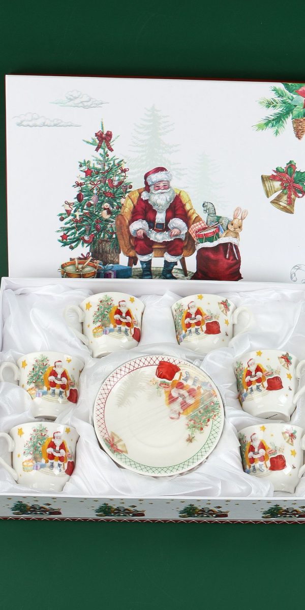 Blagdanski set šalica i tanjurića – 6 šalica (100ml) + 6 tanjurića – “Santa”