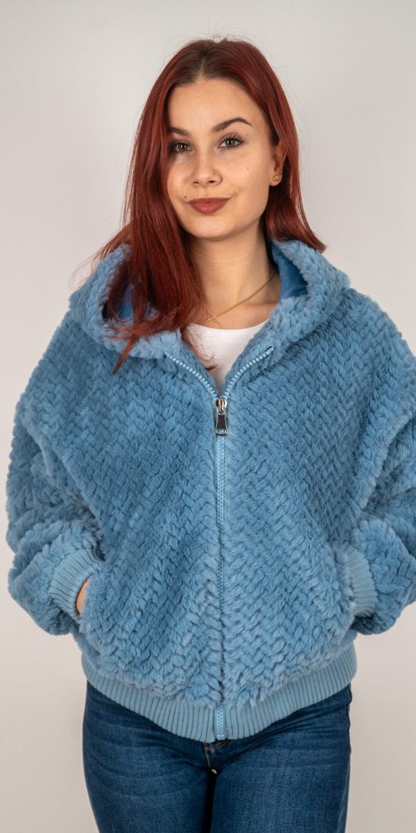 Ženska mekana krznena jakna s kapuljačom i patentnim zatvaranjem – 21819