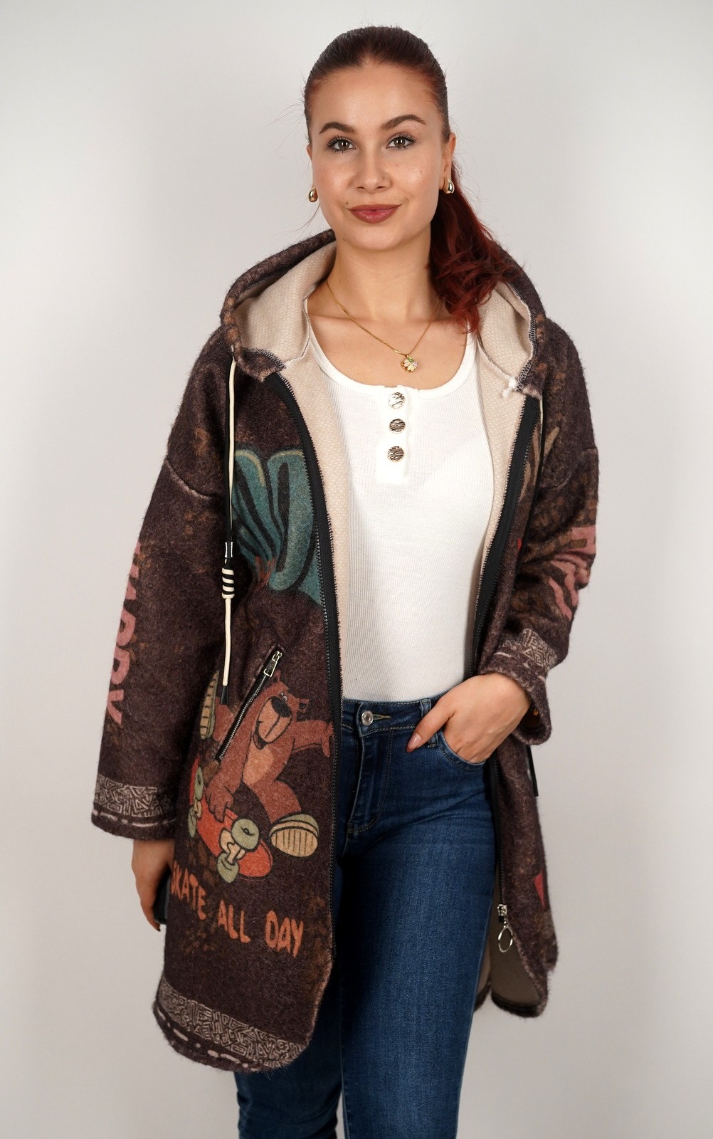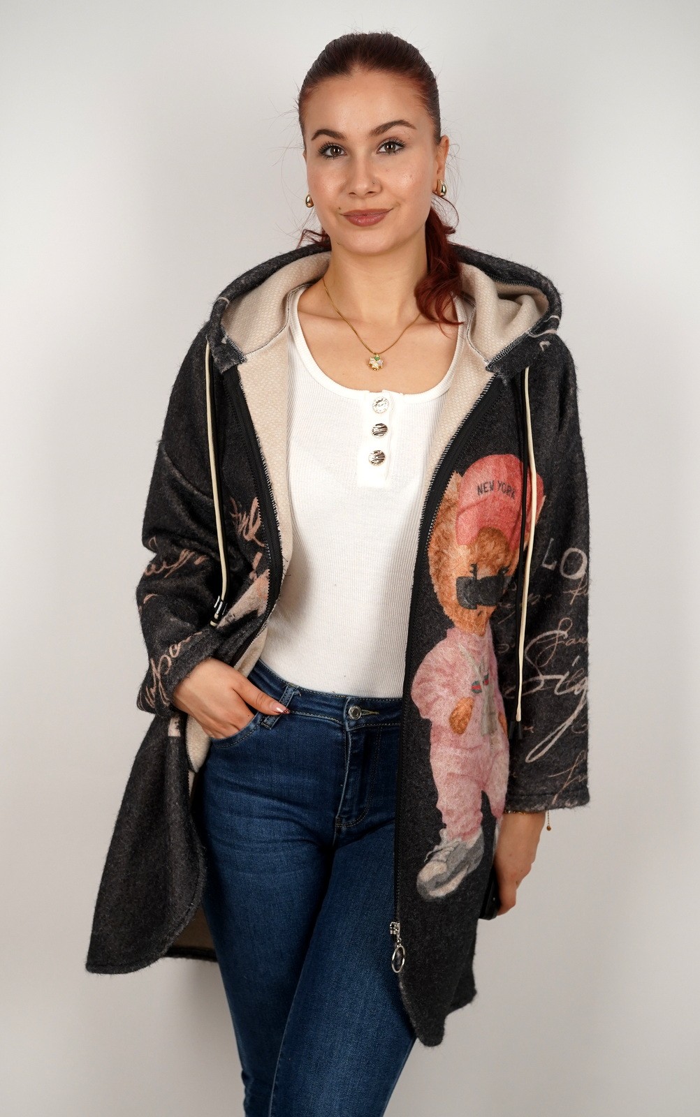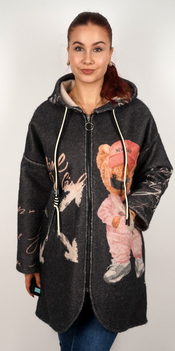 kolekcijaŽenska topla jakna s kapuljačom i medvjedić printom – zip model s vezicama – 3380 – uzorak I