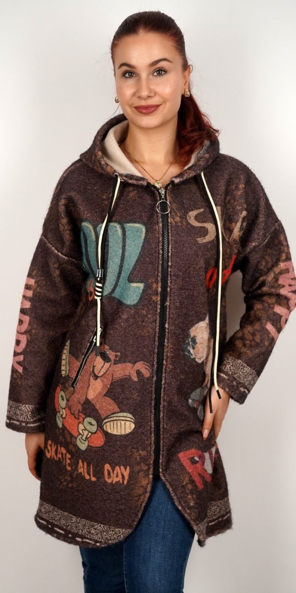kolekcijaŽenska topla jakna s kapuljačom i medvjedić printom – zip model s vezicama – 3380 – uzorak II