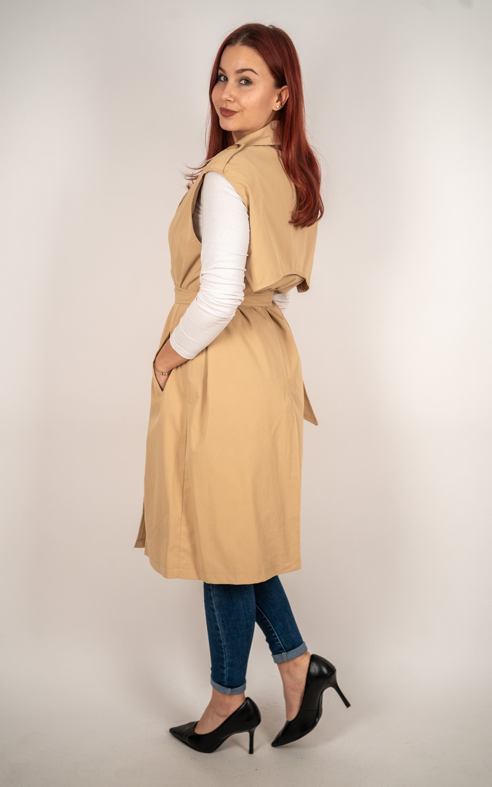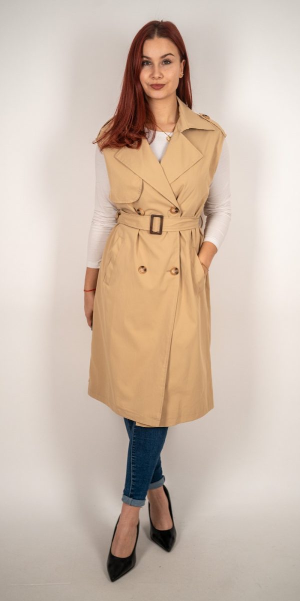 kolekcijaŽenski dugi mantil bez rukava s pojasom – u veličinama – 8067