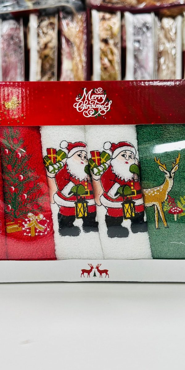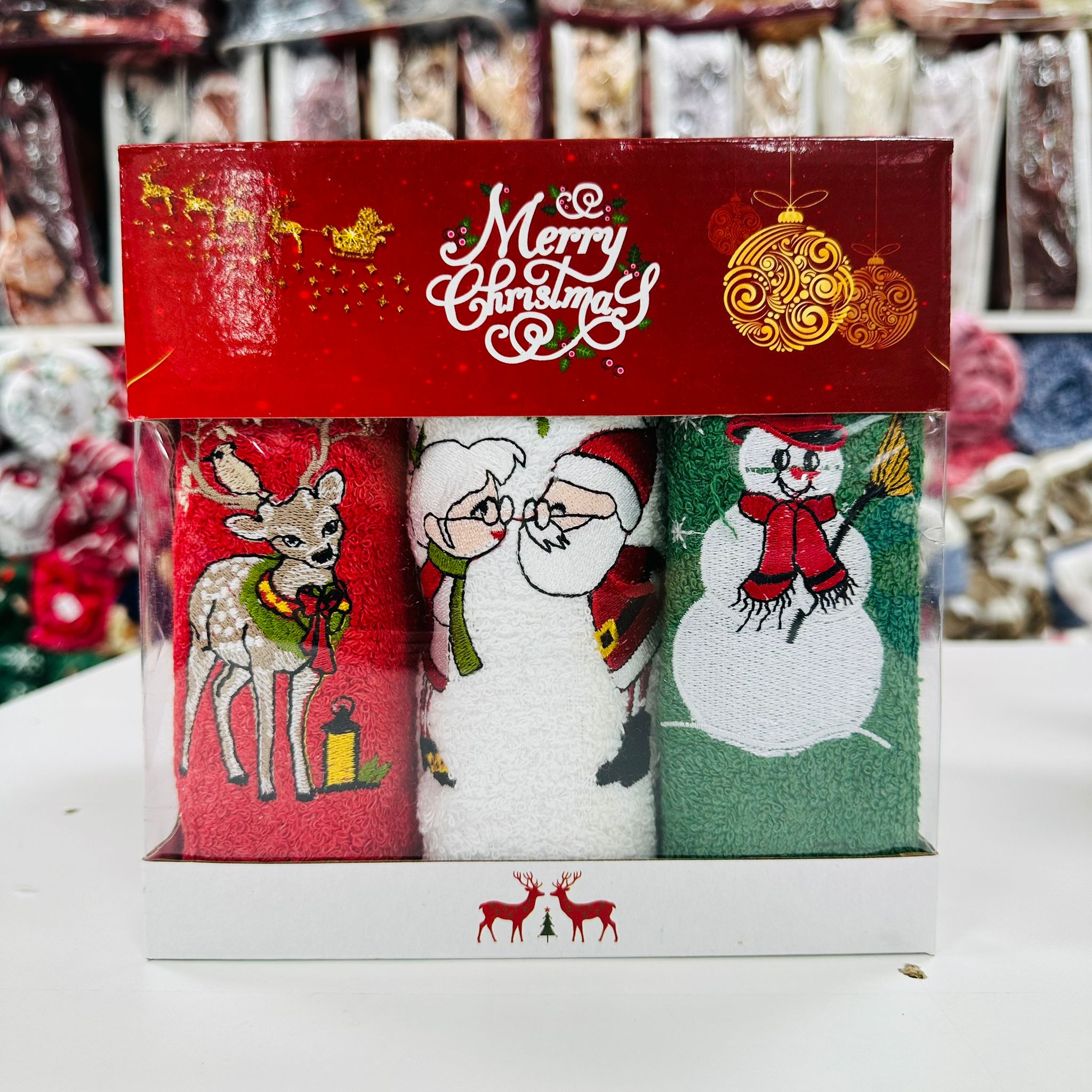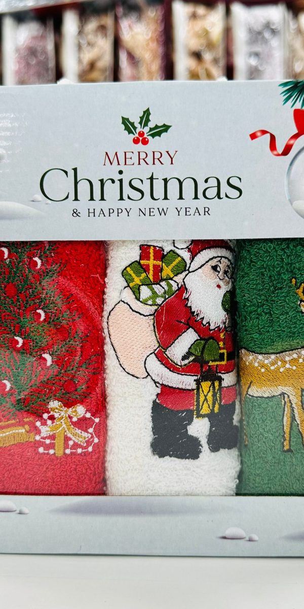 Blagdanski poklon set frotirnih krpa s visokokvalitetnim vezenim motivima (Djed Božićnjak, Snjegović, Jelen). Idealno za…