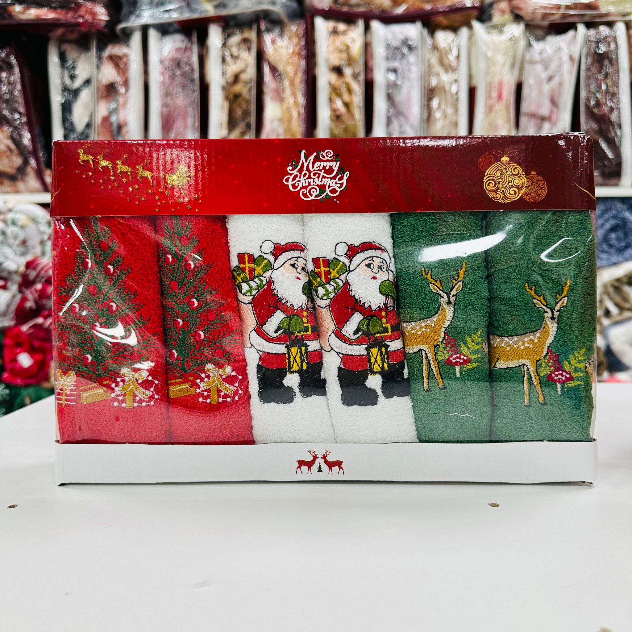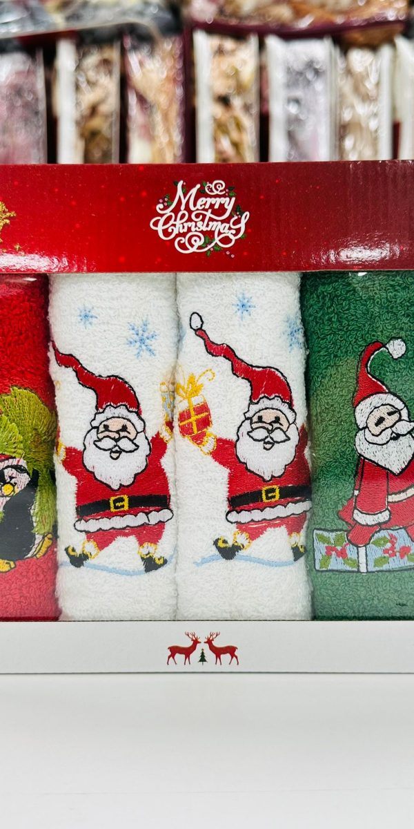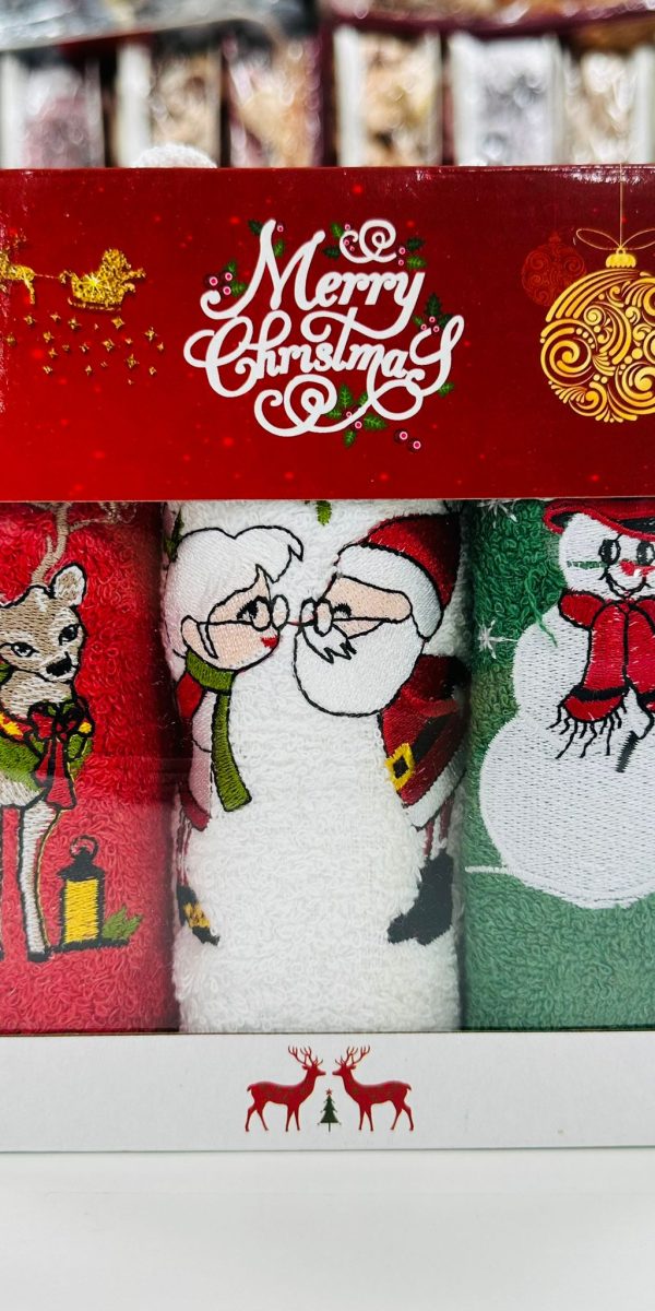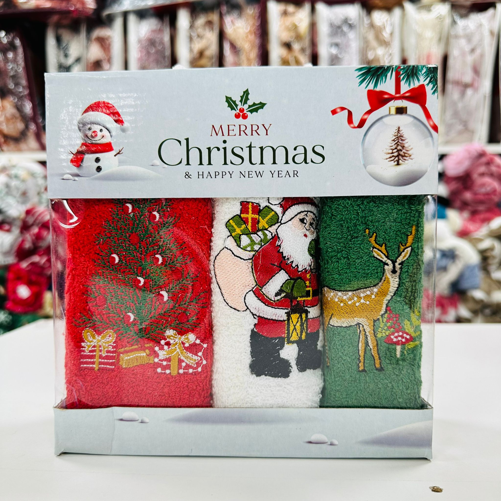 Blagdanski poklon set frotirnih krpa s visokokvalitetnim vezenim motivima (Djed Božićnjak, Snjegović, Jelen). Idealno za…