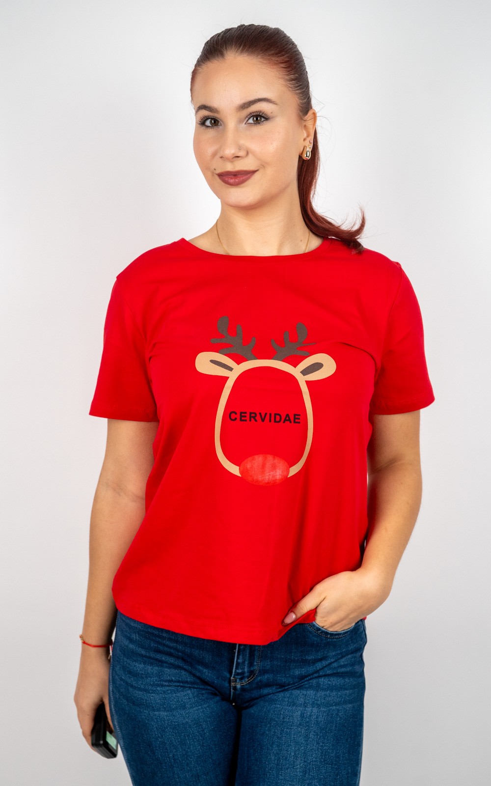 Ženska pamučna majica s božićnim printom, dostupna u bojama bijela, crna i crvena. Ova udobna…
