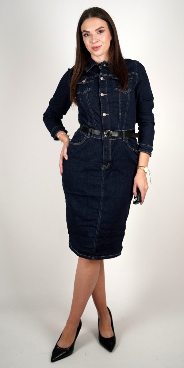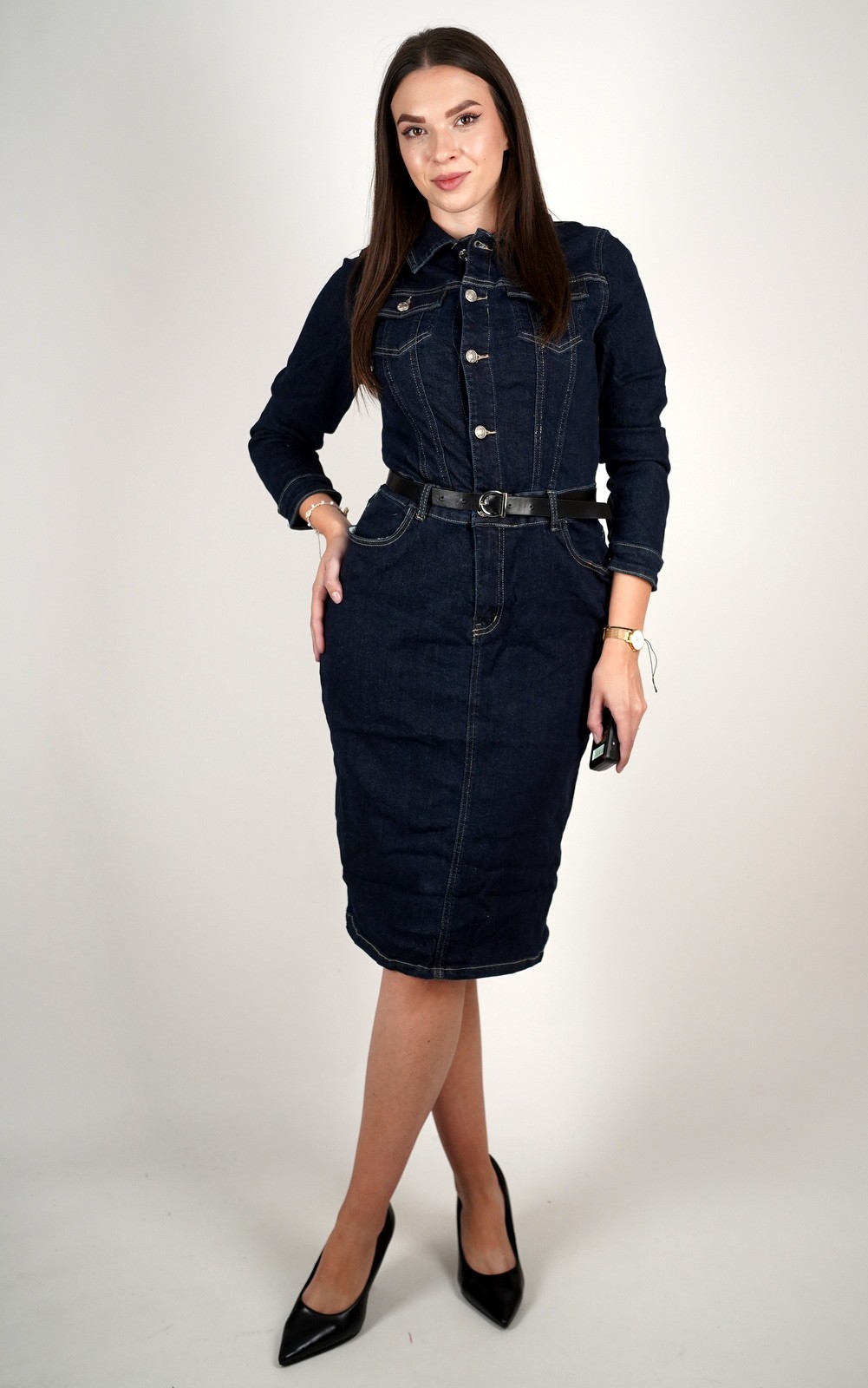 Ženska traper haljina s gumbićima – u veličinama – RE267