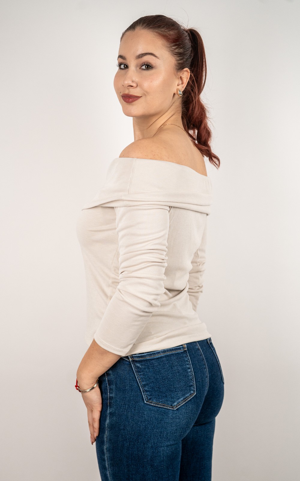 Elegantna i ženstvena majica otvorenih ramena izrađena od mekanog, elastičnog rebrastog materijala koji se savršeno…