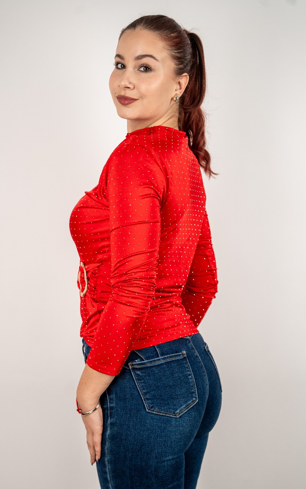 Ženska elegantna majica s sitnim cirkonima i detaljem – 89472