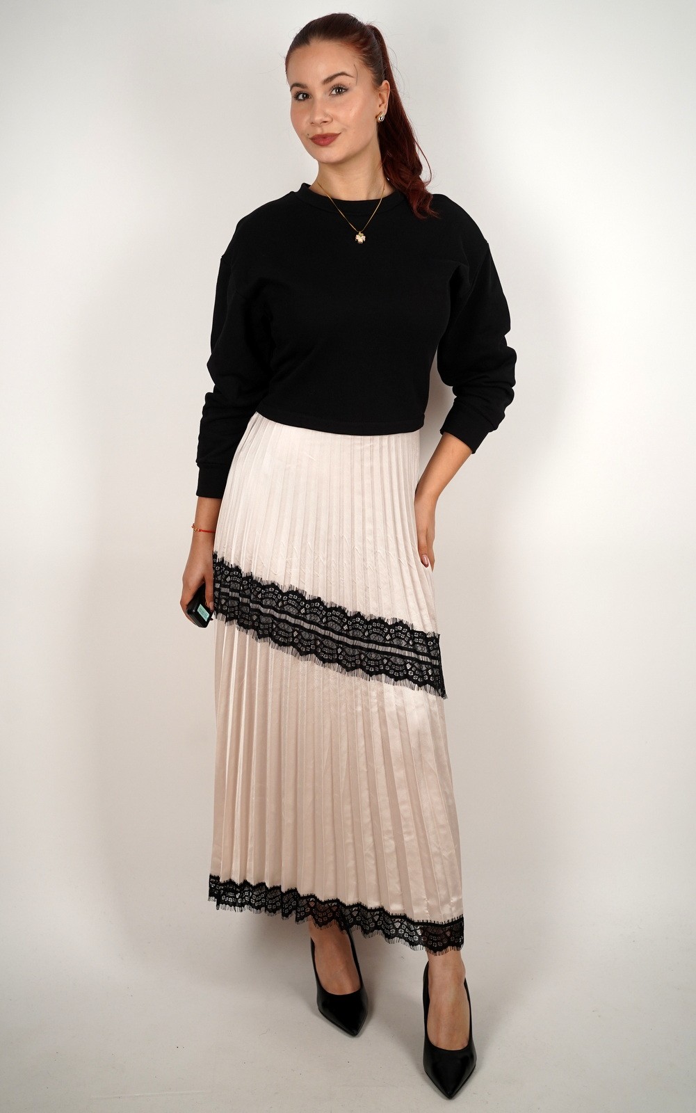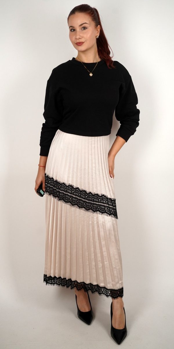 kolekcijaŽenska duga haljina s plisiranim dijelom i čipkanim detaljima – 55857