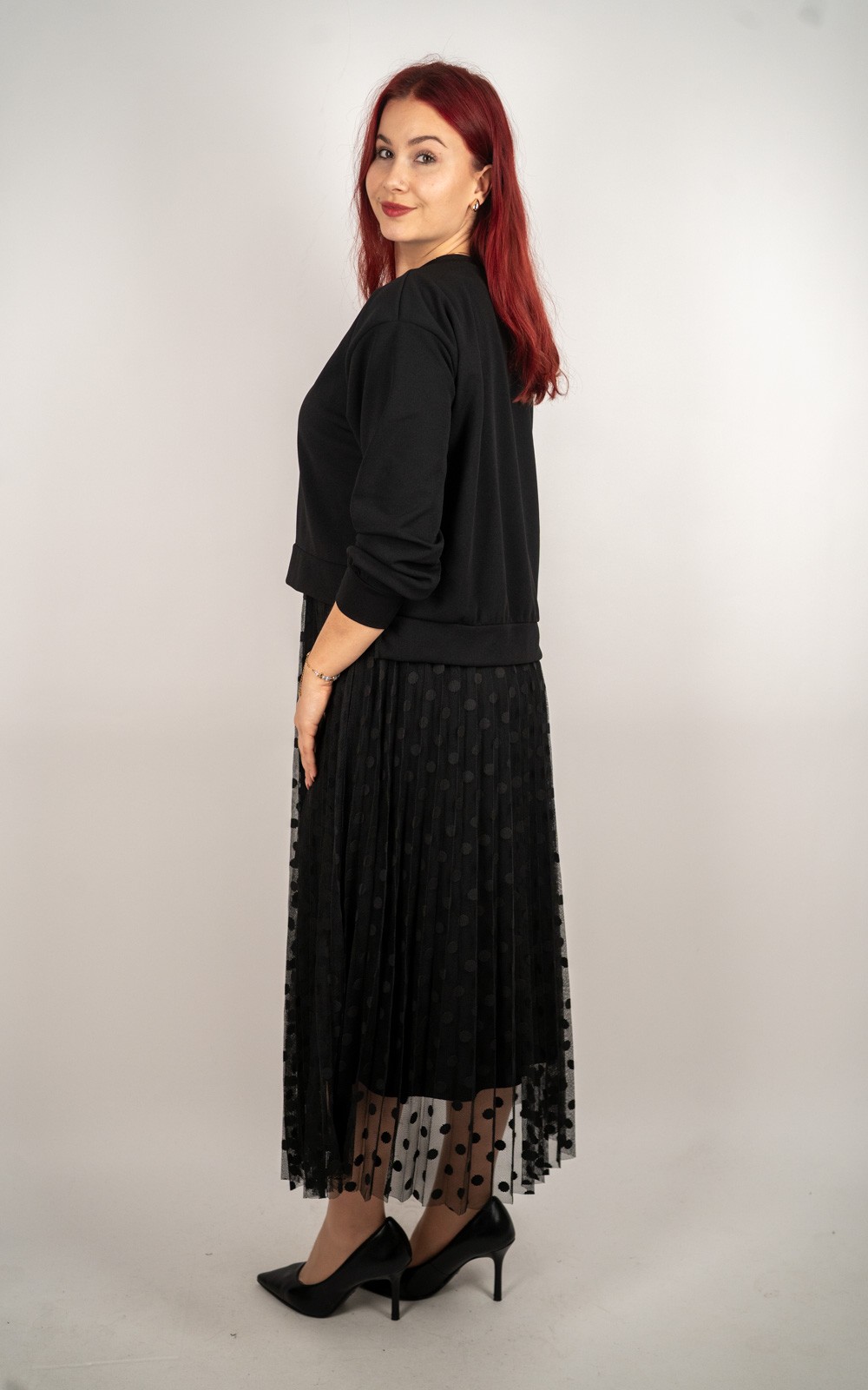 kolekcijaŽenski komplet – majica + plisirana haljina s točkicama – 51058
