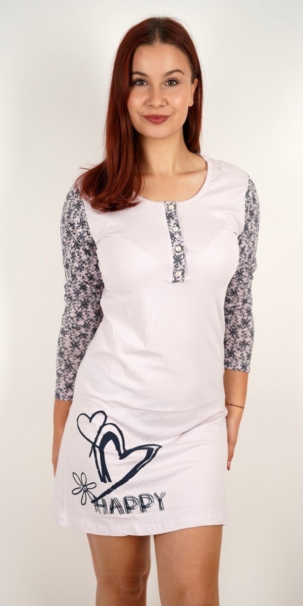 Ženska spavaćica s natpisom Happy i cvjetnim rukavima – u veličinama – 14707