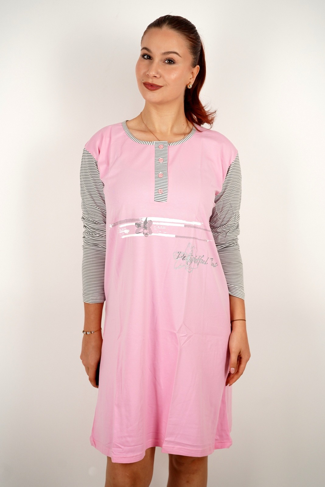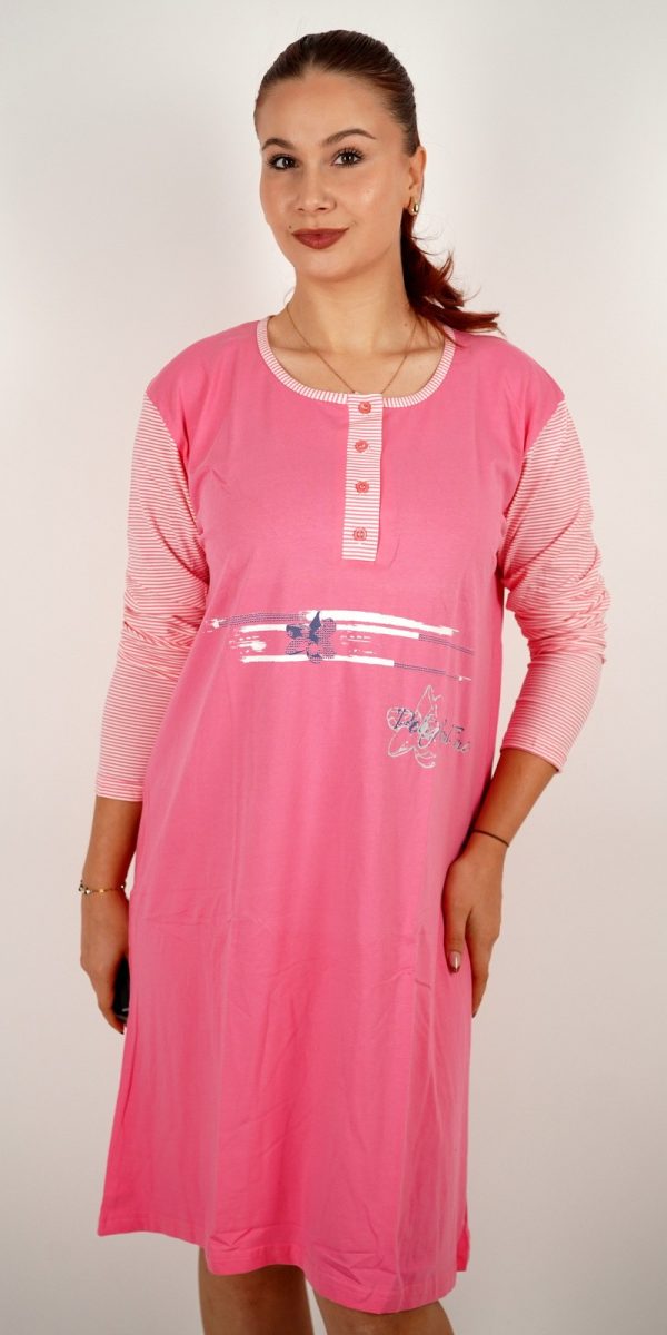 Ženska spavaćica s natpisom Love i prugastim rukavima – u veličinama – 14709