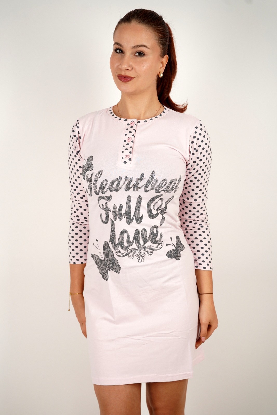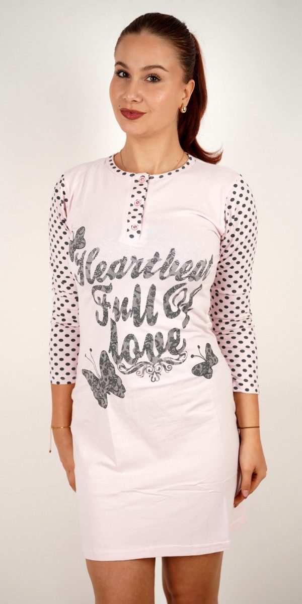 Ženska spavaćica s natpisom Full of Love i točkastim rukavima – u veličinama – 1501