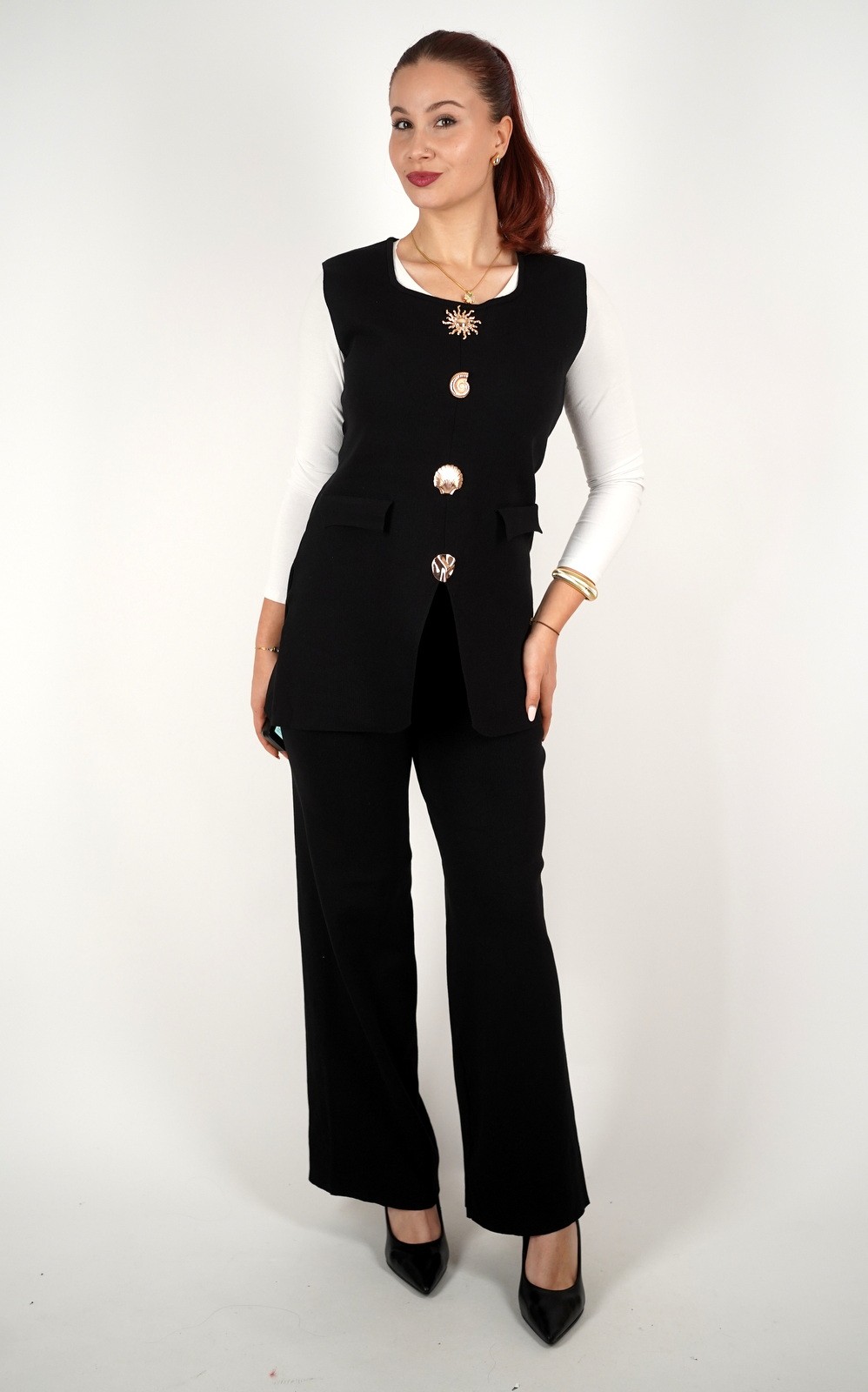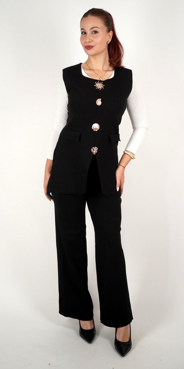 kolekcijaŽenski komplet s dekorativnim gumbima – prsluk + hlače – 6672