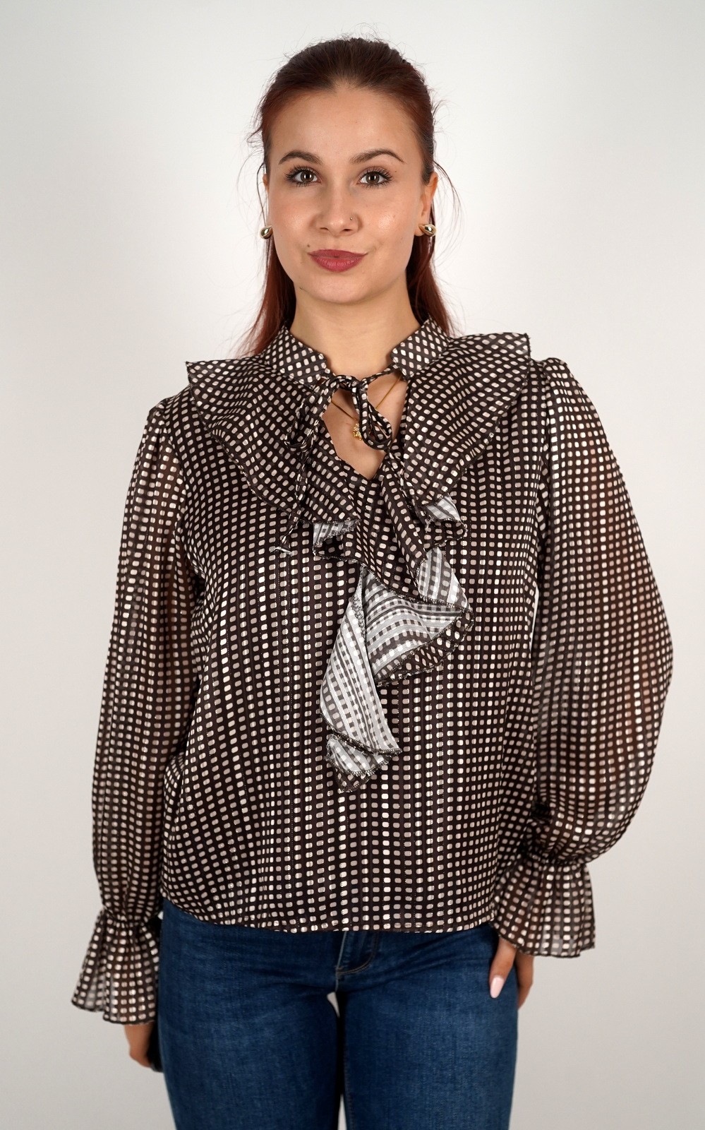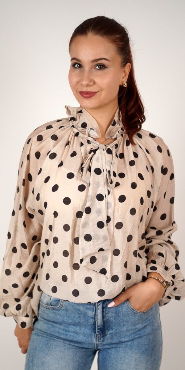 kolekcijaŽenska košulja na točkice s volanom i dekorativnom mašnom – sitne točkice – 5078