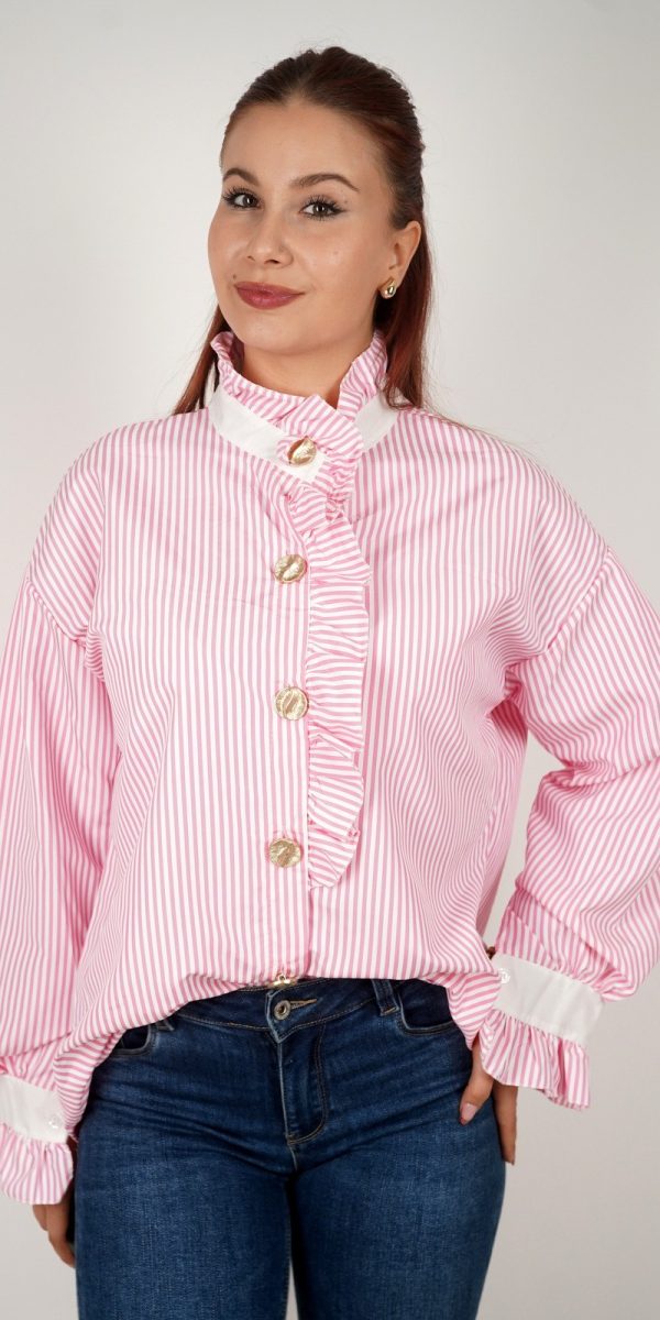 Ženska pamučna prugasta košulja s volanom i gumbićima – 16877