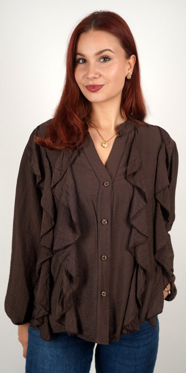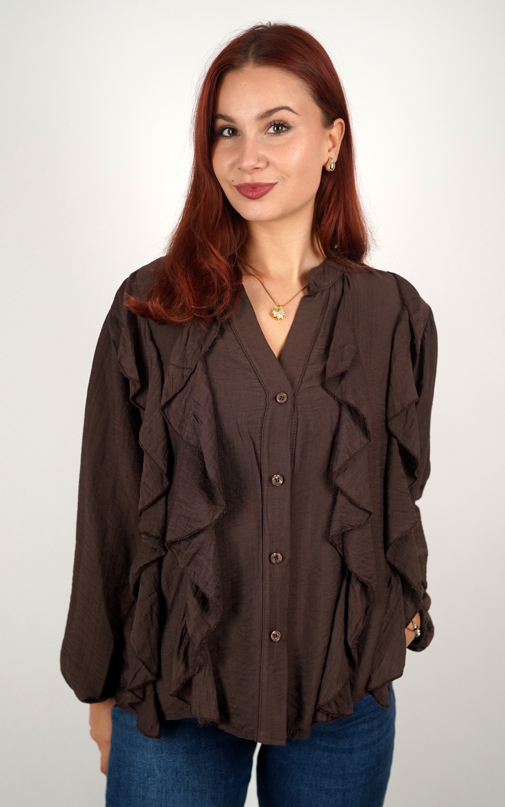 kolekcijaŽenska viskozna košulja s volanima i V-izrezom na kopčanje – ART19328
