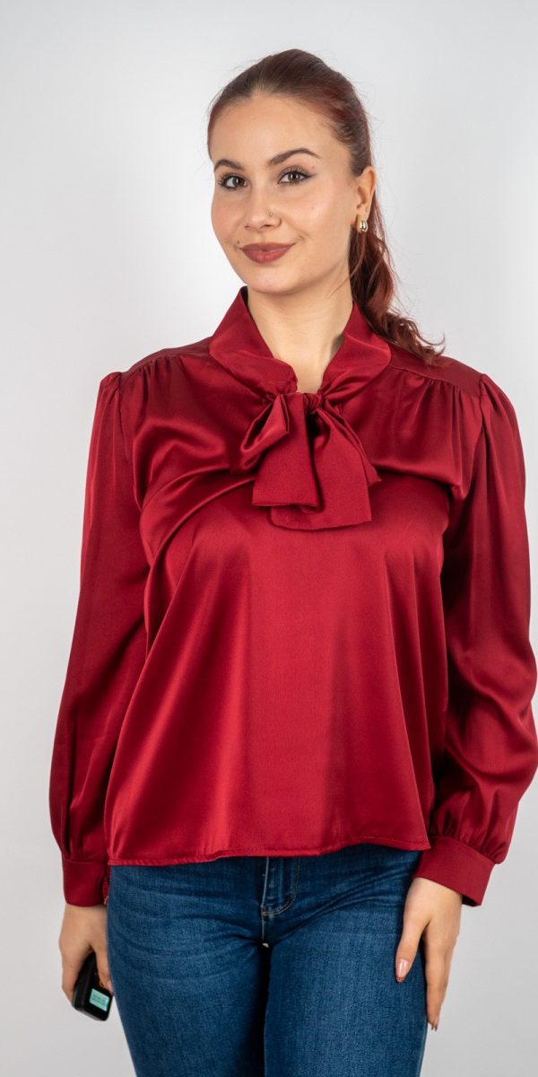 kolekcijaŽenska elegantna satenska košulja s mašnom – 45011617