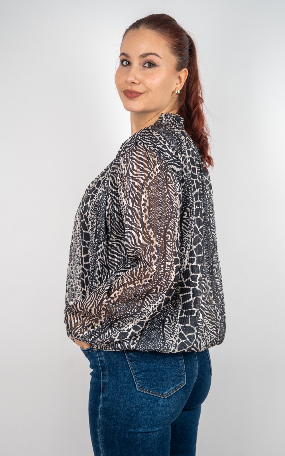 33.00 €Prozirna košulja s volanima i ukrasnim gumbima odiše romantičnim i elegantnim stilom. Lagani materijal pruža…