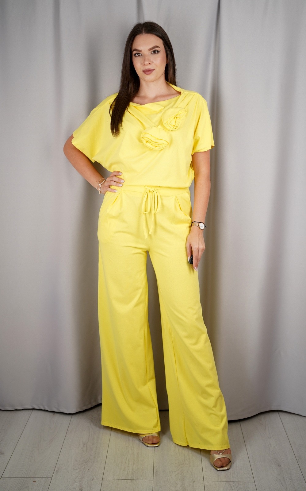 Ženski komplet s cvjetnim detaljem i hlačama širokog kroja – ART243110