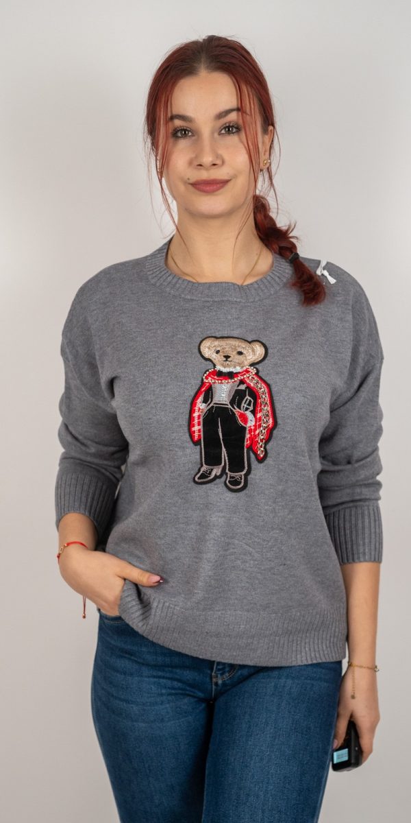 kolekcija10% POPUSTA, BOŽIĆNI POPUSTI, Izdvojeno, Majice, Majice fino meko pletivo, Nova kolekcija, Pletene majice, Pletivo, Plus Size, ŽeneŽenska pletena majica s aplikacijom medvjedića i dekorativnim detaljima – u veličinama – 3122