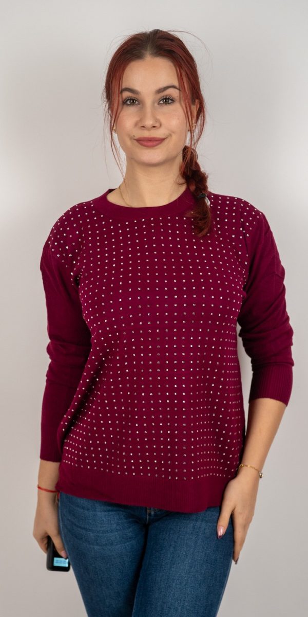 kolekcija10% POPUSTA, BOŽIĆNI POPUSTI, Izdvojeno, Majice, Majice fino meko pletivo, Nova kolekcija, Pletene majice, Pletivo, Plus Size, ŽeneŽenska pletena oversized majica s ukrasnim cirkonima – 6776